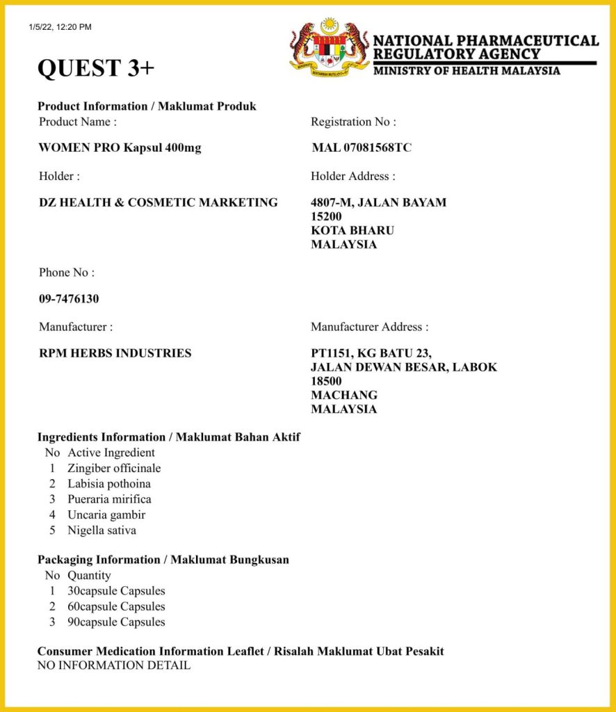 Women Pro ini disahkan selamat oleh kementerian Kesihatan Malaysia