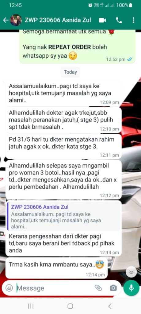 โdah boleh kawal kencing, sakit tumit dah berkurang’ย time datang bulan dh normal, takde nyiru pada faraj, nak repeat lagiโ