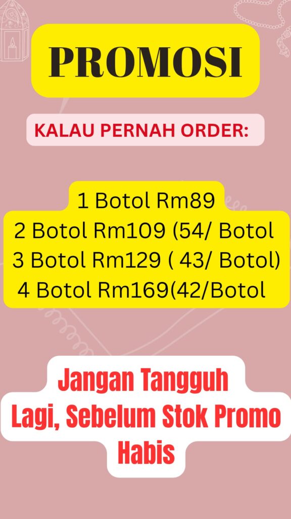 Dan kalau akak serius nak rawat masalah tombong yang dah lama membelenggu, jujur saya katakan ambilah 3 botol. Amalkan secara konsisten pasti akan dapat kesan yang maksimum. Bukan setakat tu, akak juga akan jimat berganda. Kalau ikutkan harga asal rm450 untuk 3 botolย tapi sekarang bos nak bagi harga RM129 je, akak dapat jimat RM301, yang ni memang betul-betul harga tak masuk akal. Murah sangat2 dapat 3 free Gift tau!!!