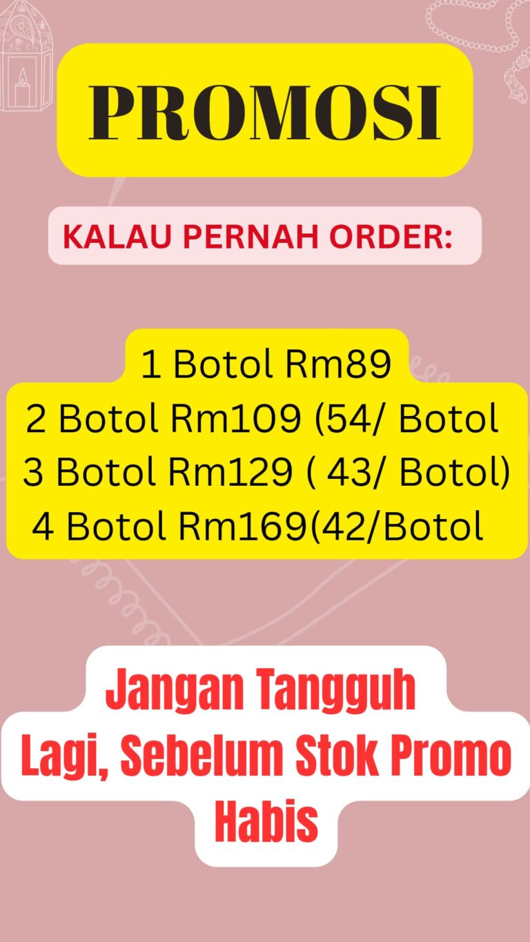 Kalau akak nak jimat lagi, akak boleh ambil pakej 2 botol, sebab harga asal untuk 2 botol RM300, tapi sekarang bos kami bagi hanya RM109 je,akak dapat jimat RM171 tau sekarang ni. dapat 2 freeGIft plk tu, waww!!